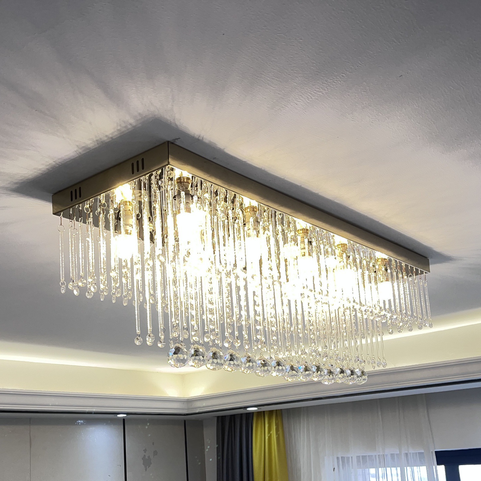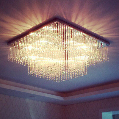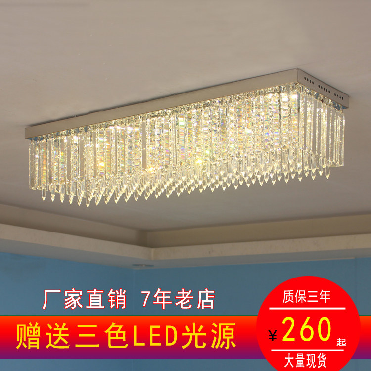 两层大气客厅水晶吸顶灯具现代简约长方形led餐厅卧室长水晶灯饰