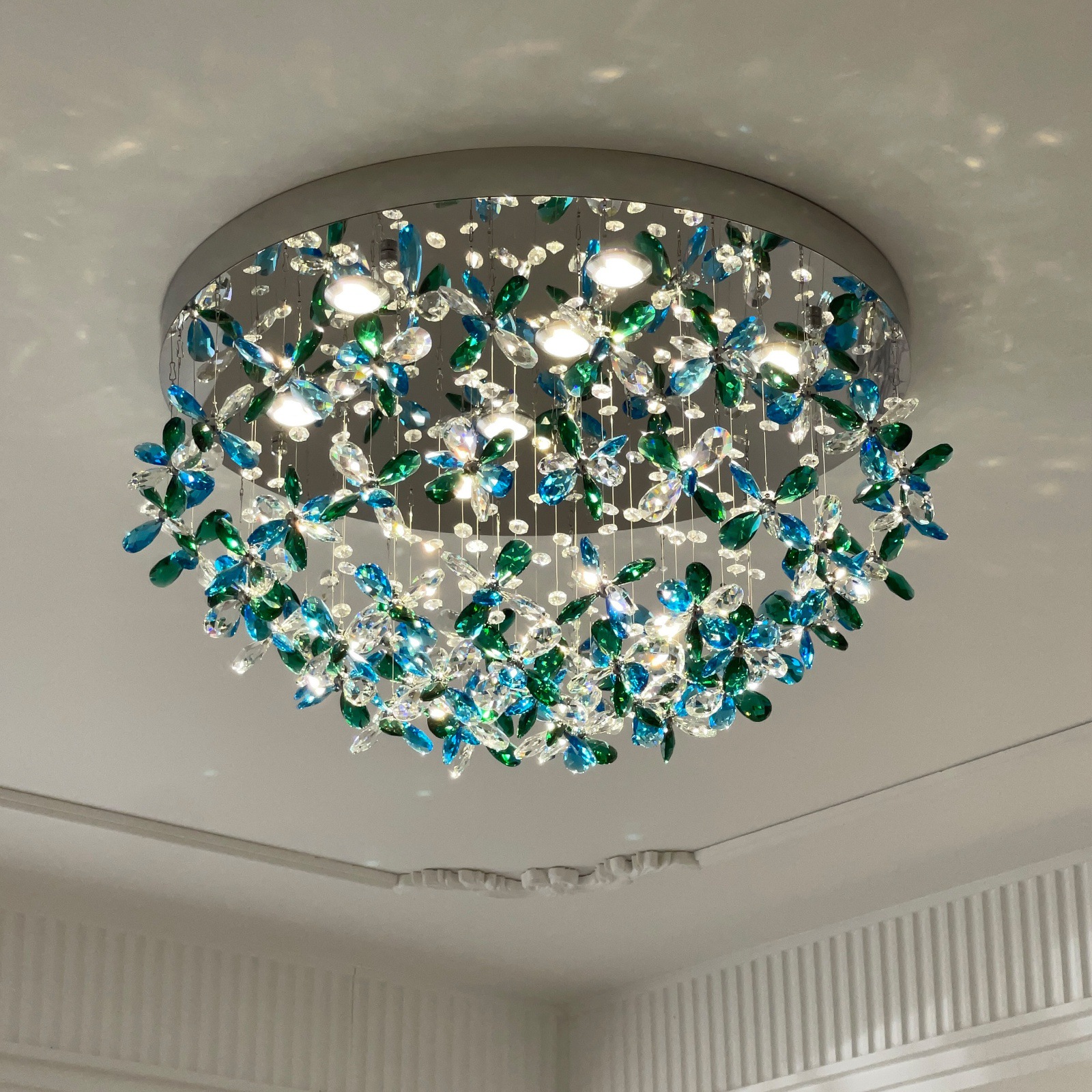客厅吸顶灯2025新款现代轻奢花朵水晶圆形创意高档卧室餐厅吊灯具