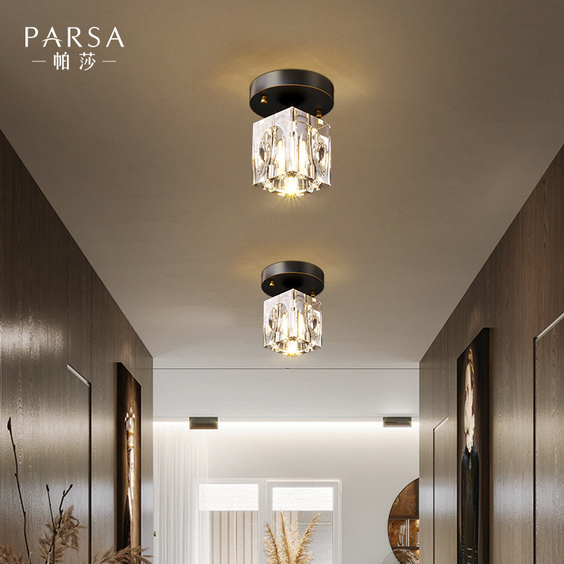 帕莎水晶过道灯轻奢全铜吸顶灯走廊灯现代简约玄关阳台衣帽间灯具