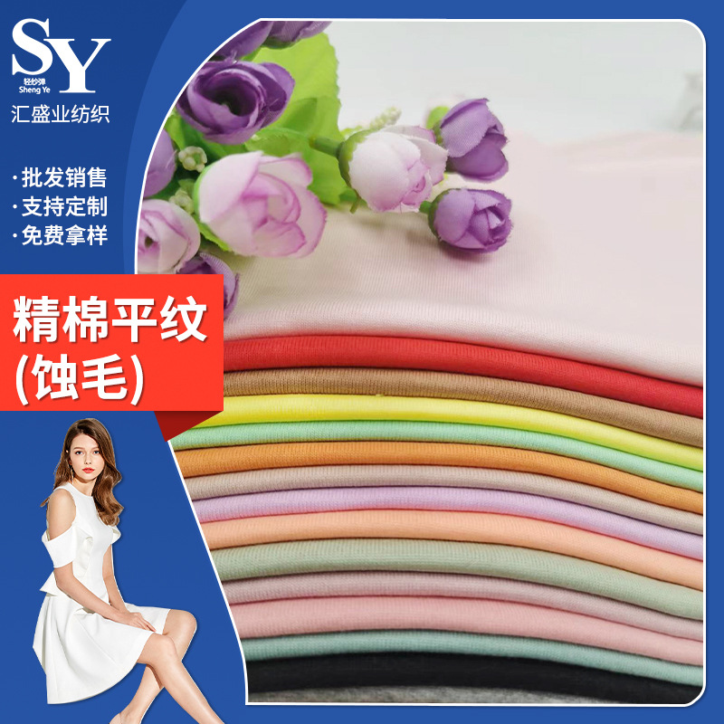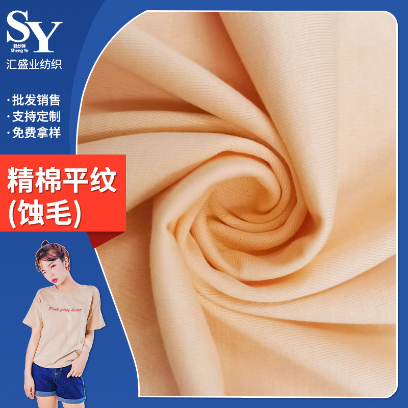 40S双纱强捻单面汗布250g麻感沙感平纹Supim皮马棉 春夏季T恤面料