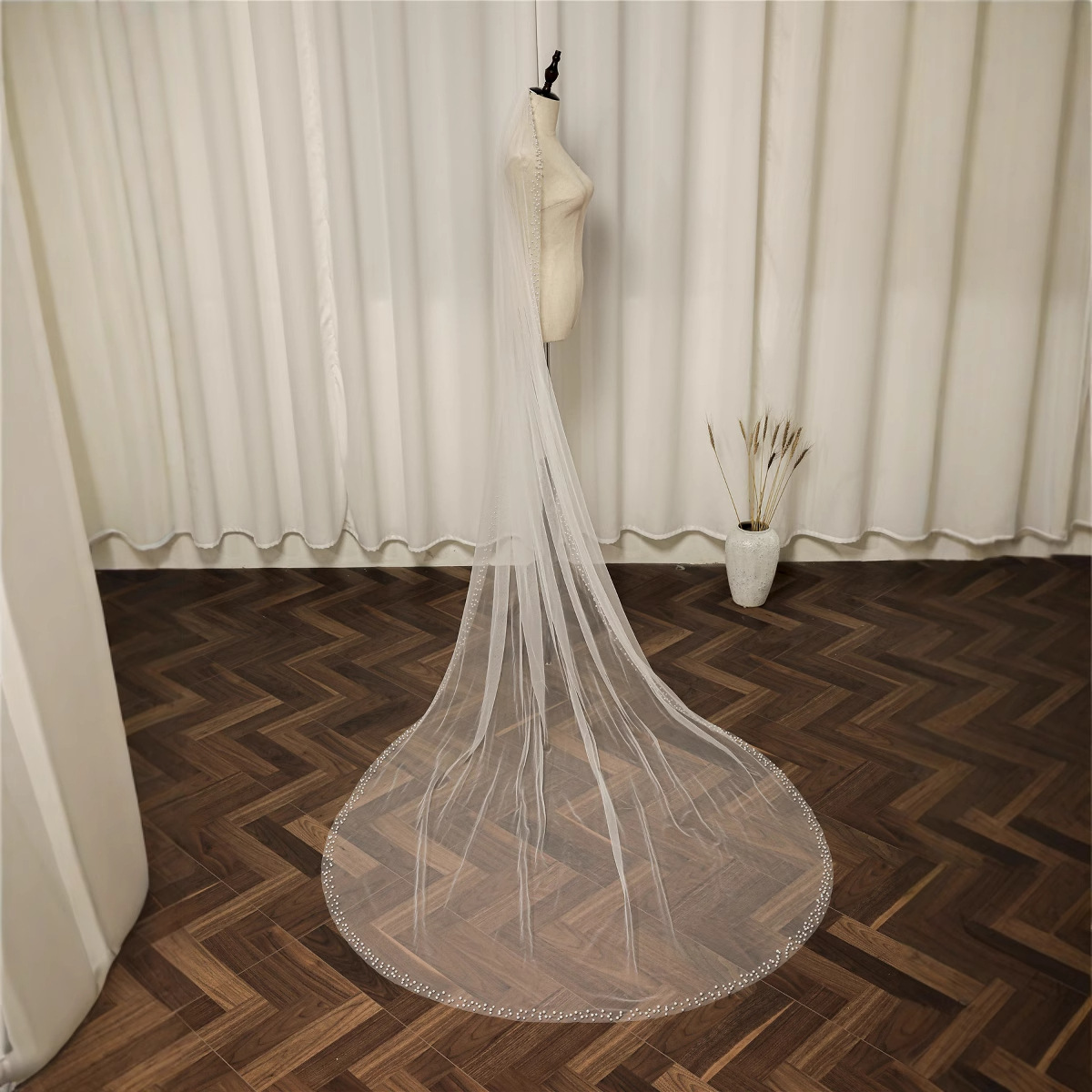 珍珠款红菱头纱2025系列HL129长款3米小教堂拖尾新娘头纱配件婚纱