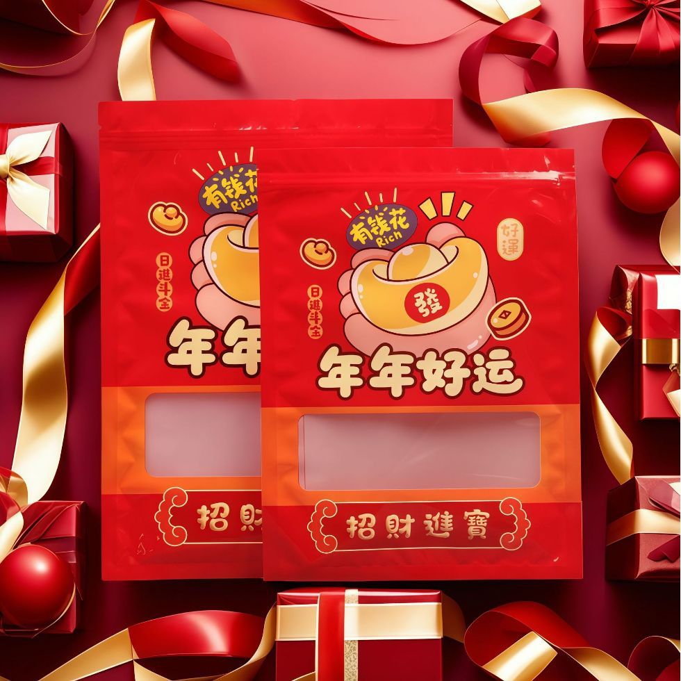 年年好运新年礼品包装袋糖果蜜饯干货自立自封袋婚庆乔迁通用袋子