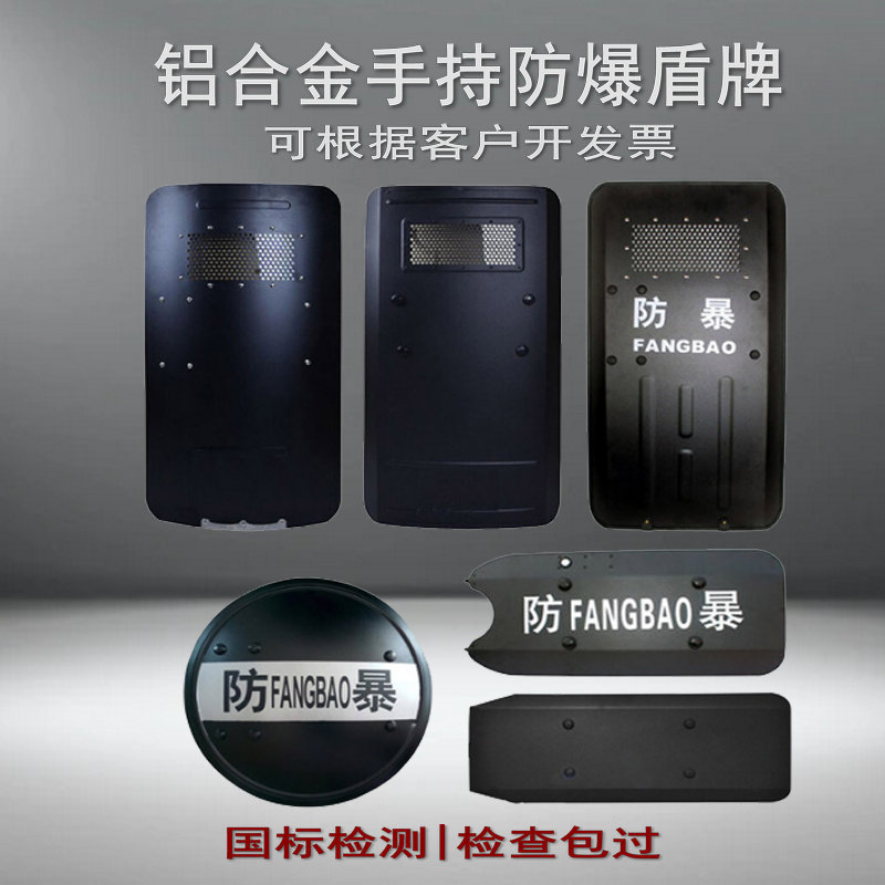铝合金盾牌 PC防护镜手持防卫保安方盾包边防护圆盾牌铝合金盾牌