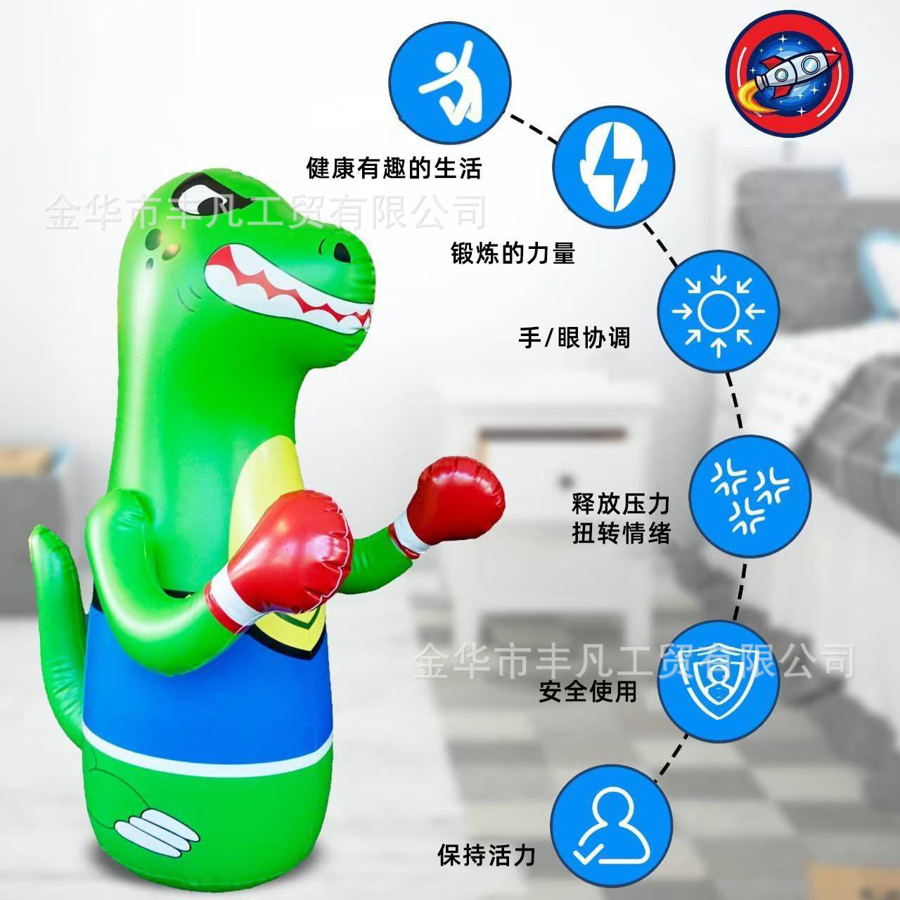亚马逊注水立式不倒翁健身沙包拳击柱儿童拳击沙袋PVC充气打气