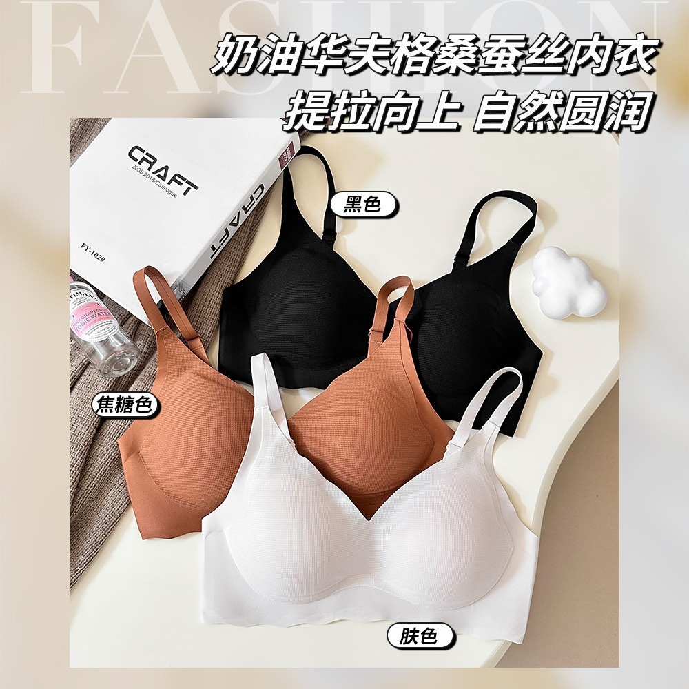 桑蚕丝软支撑内衣女华夫格杯面小胸聚拢无痕舒适透气文胸女