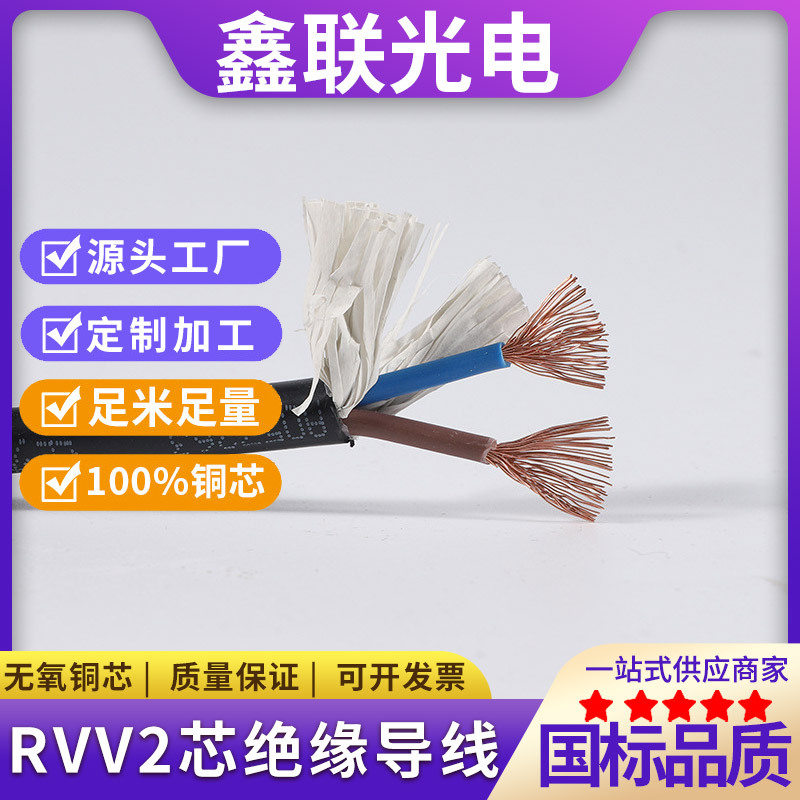 国标纯铜家装RVV2芯无氧绝缘导线国标电线电缆 铜芯护套线