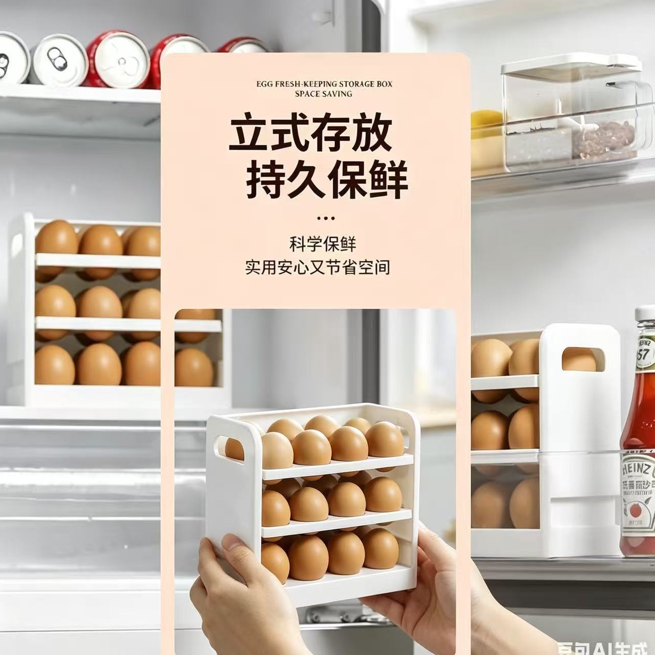 冰箱鸡蛋收纳神器 自动补位滚蛋设计多层大容量防尘保鲜蛋盒