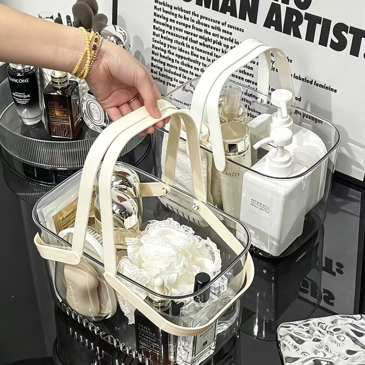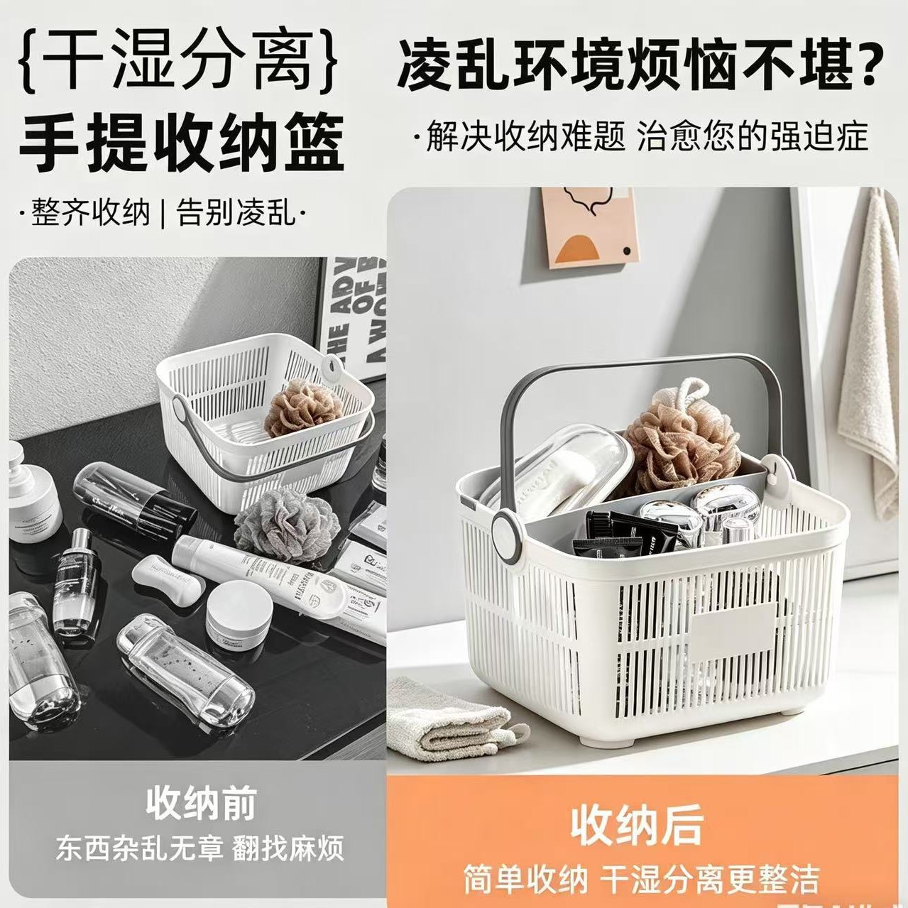 宿舍浴室手提沐浴篮 干湿分区分类收纳 高颜值桌面杂物整理收纳筐