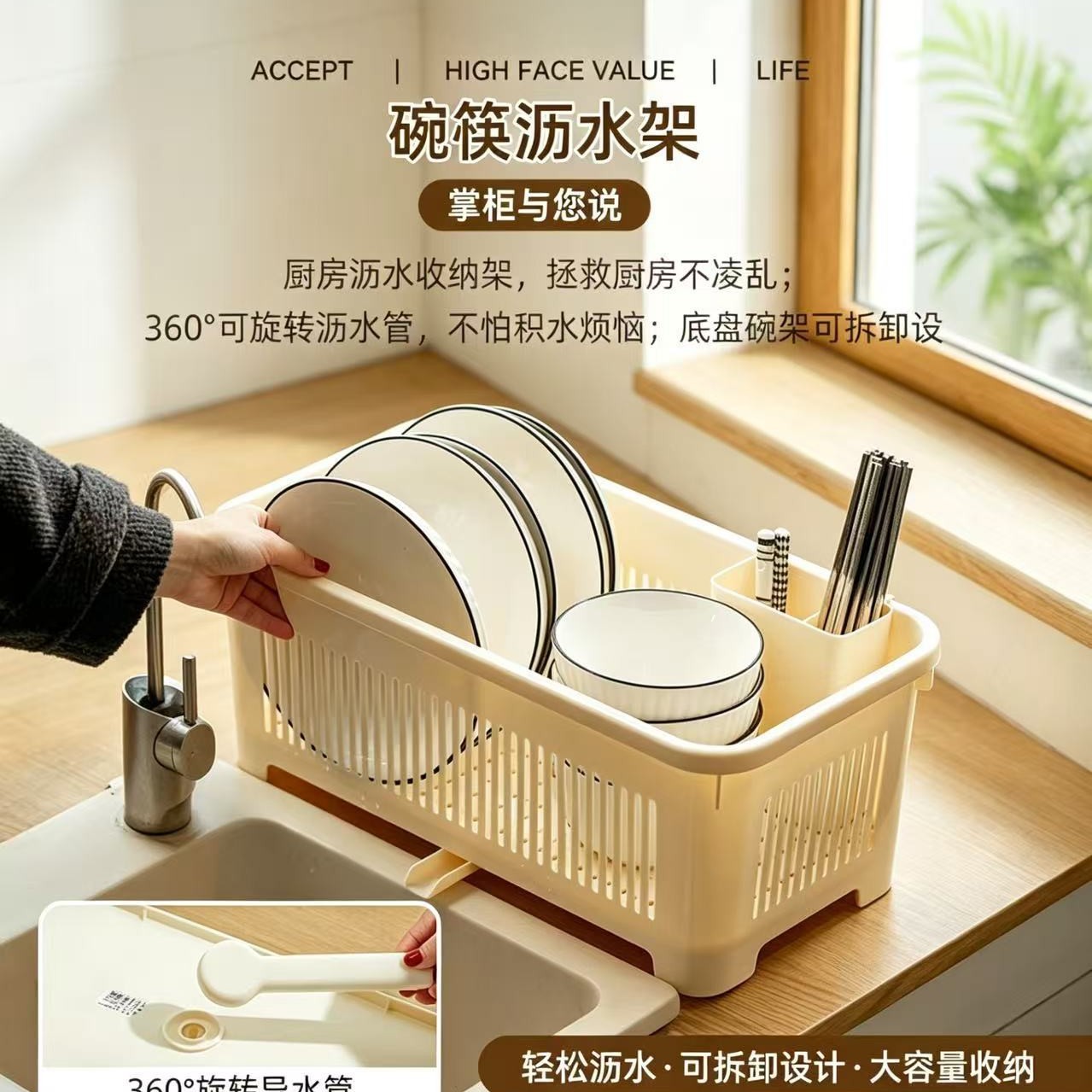 家用厨房餐具沥水收纳架 可拆洗带导水管 碗碟筷子一体整理置物架