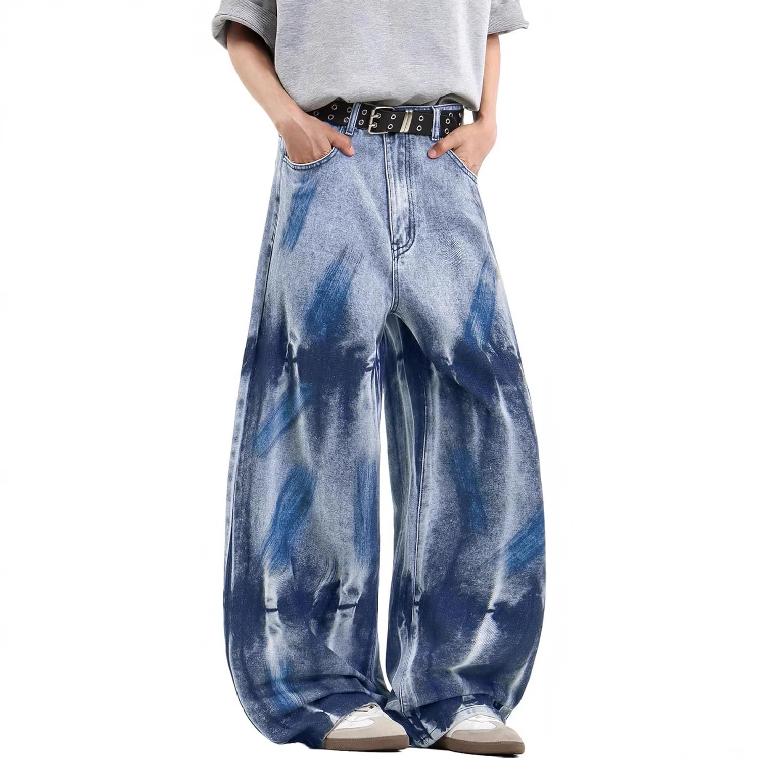美式高街印花渐变阔腿仿牛仔裤男女同款宽松垂感时尚百搭潮牌长裤
