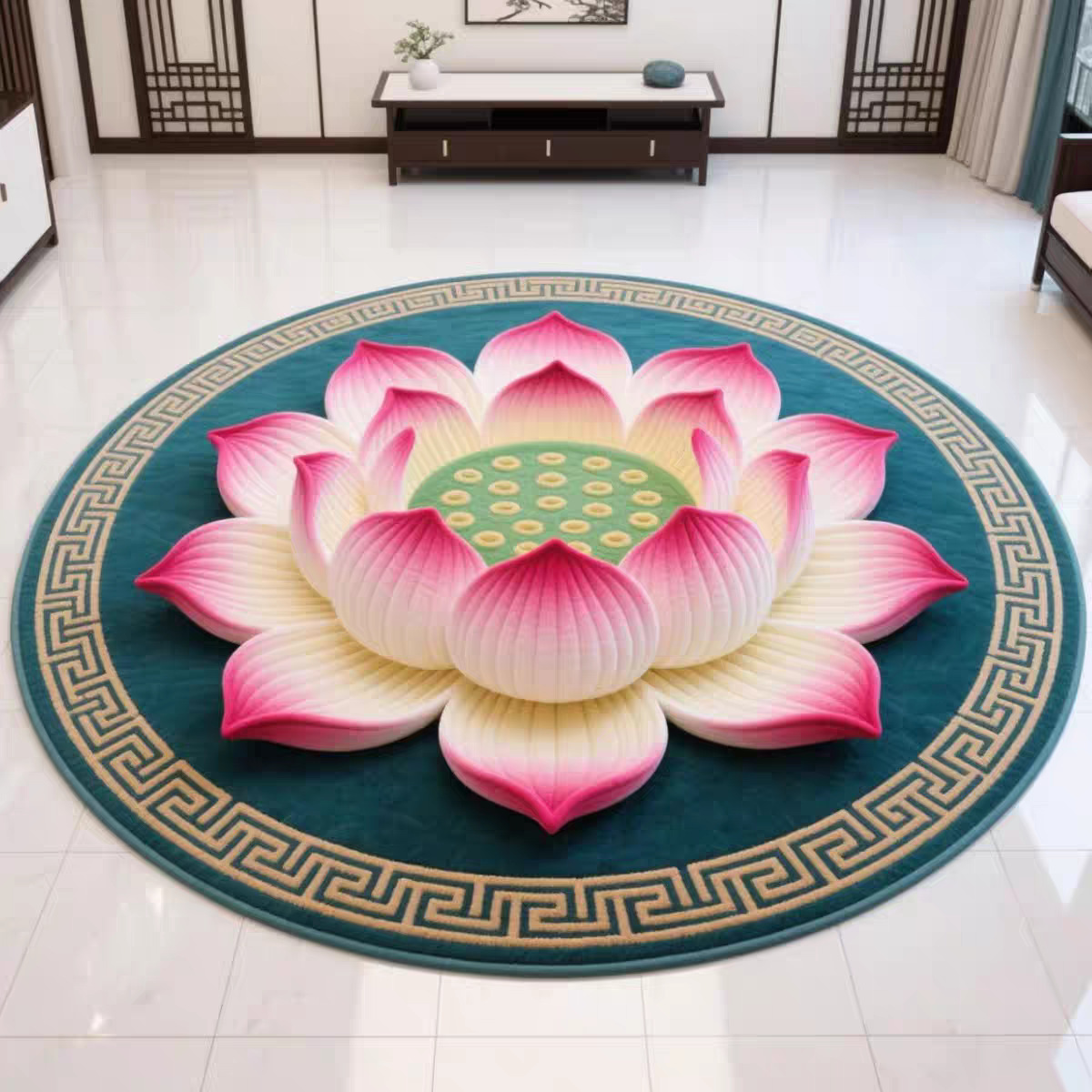 中式莲花地毯客厅家用跪拜佛堂打坐垫子寺庙荷花脚垫禅意耐脏地垫