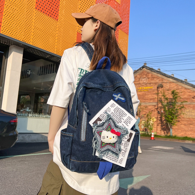 外贸新款休闲牛仔时尚百搭双肩包轻便超轻中学生慵懒风都市简约