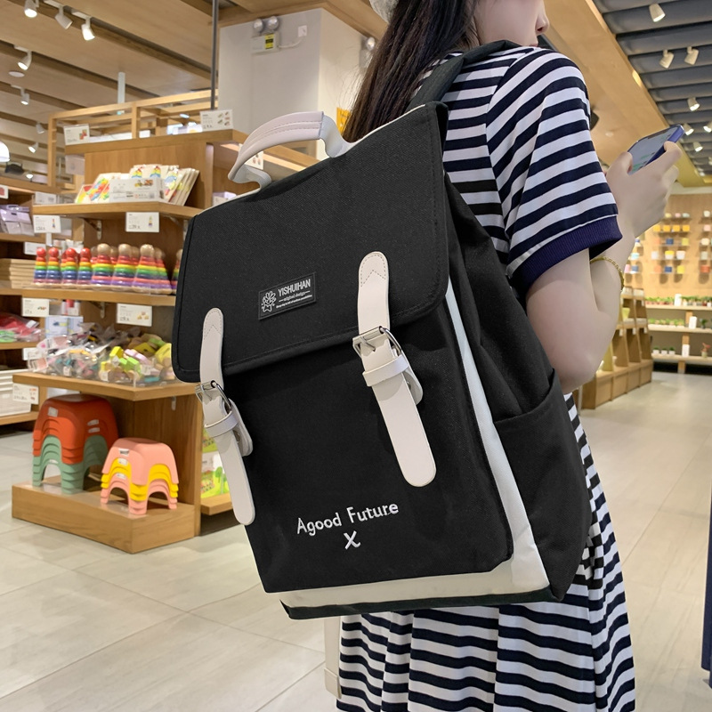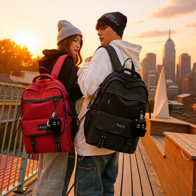 新款日系学生书包潮牌双肩包男简约情侣大容量背包休闲旅行潮流