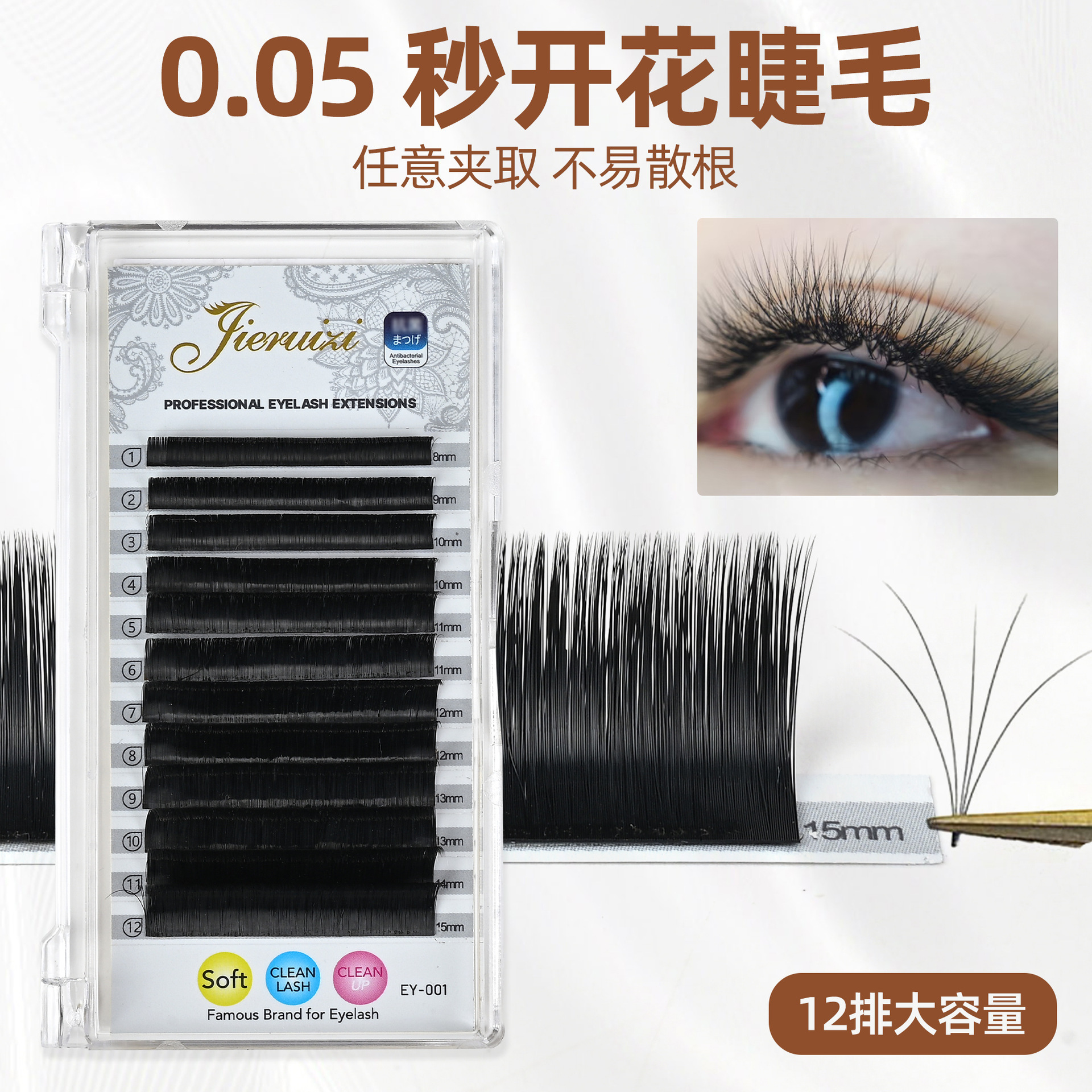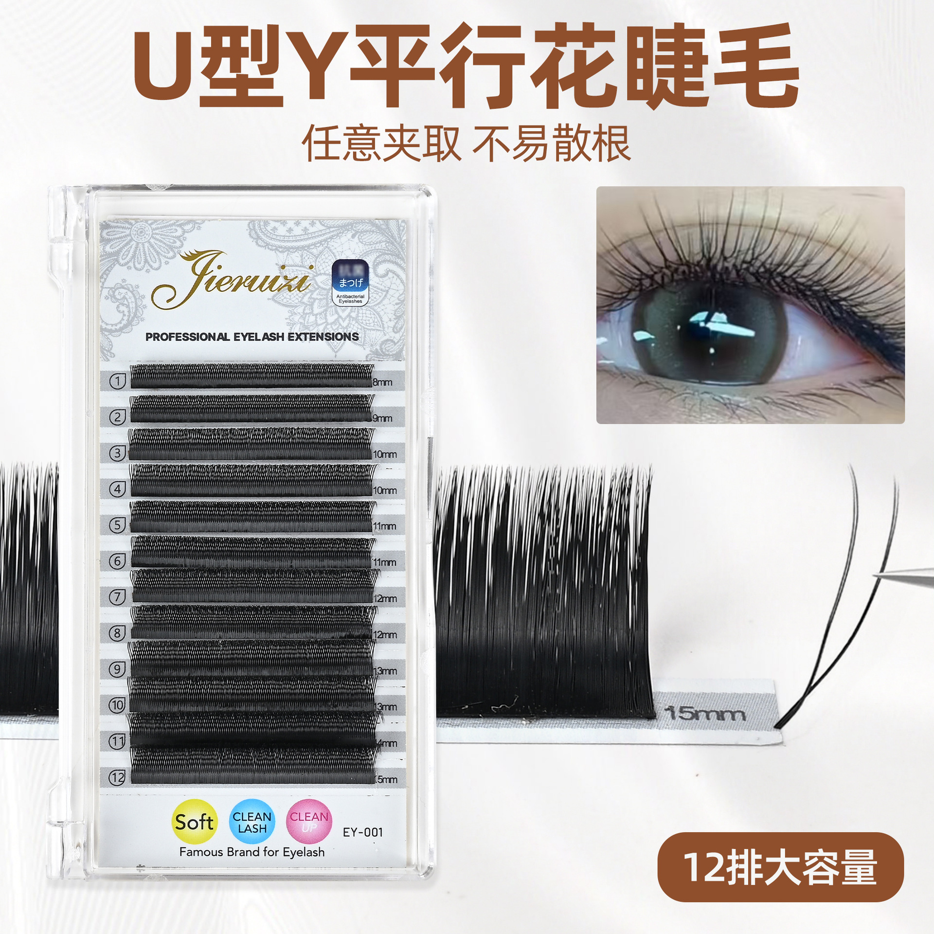 嫁接0.07U型y平行花睫毛欧美假睫毛自然浓密单根密排大容量睫毛