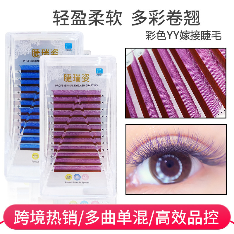 新款零触感一秒开花彩色yy嫁接睫毛自然不散根圆毛柔软美睫眼睫毛