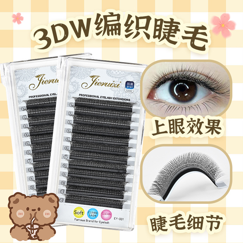 跨境嫁接睫毛0.07mm3DW编织睫毛自然密排睫毛超软美睫嫁接假睫毛