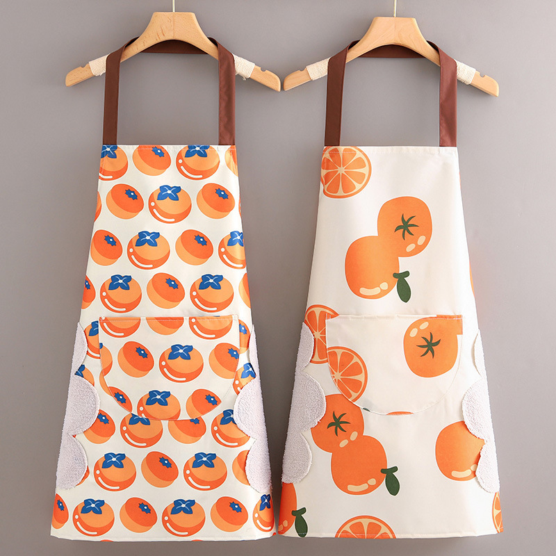 家用厨房围裙防水防油女做饭餐饮工作服罩衣时尚围腰橙色围裙