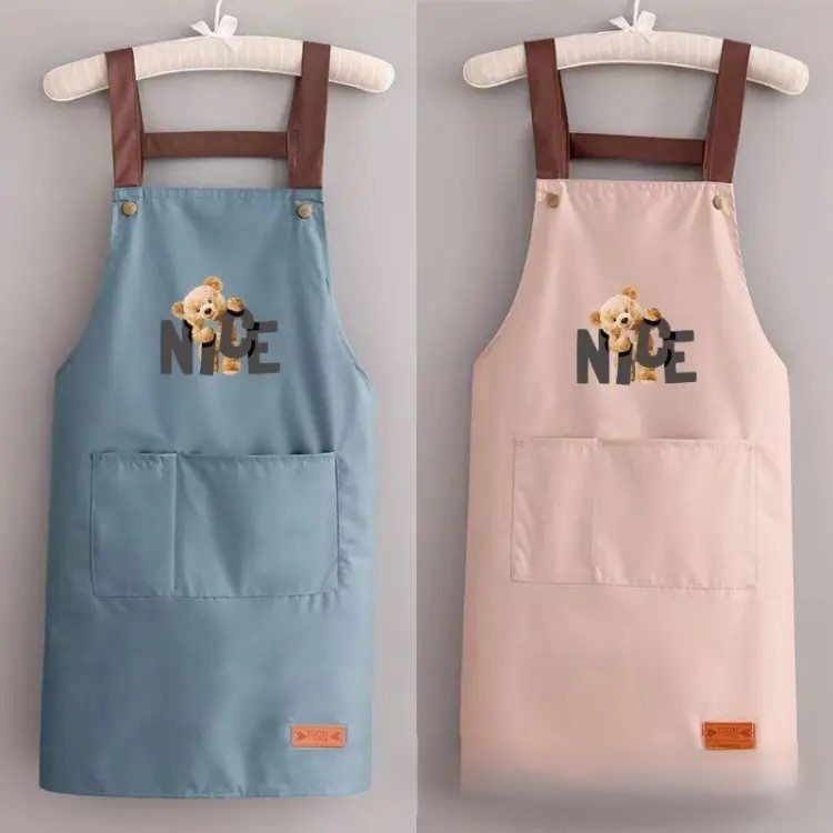 新款小熊围裙防水围裙家用厨房做饭清洁围腰餐饮工作服防油污