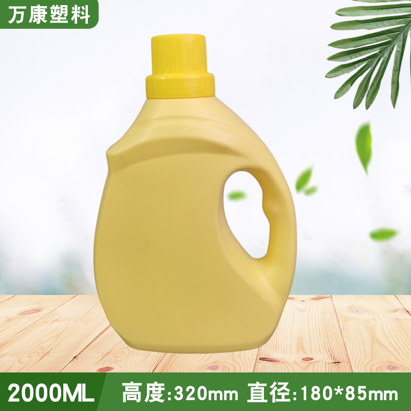 现货供应2000ML 塑料洗衣液桶 黄色圆桶日化HDPE洗衣液包装瓶