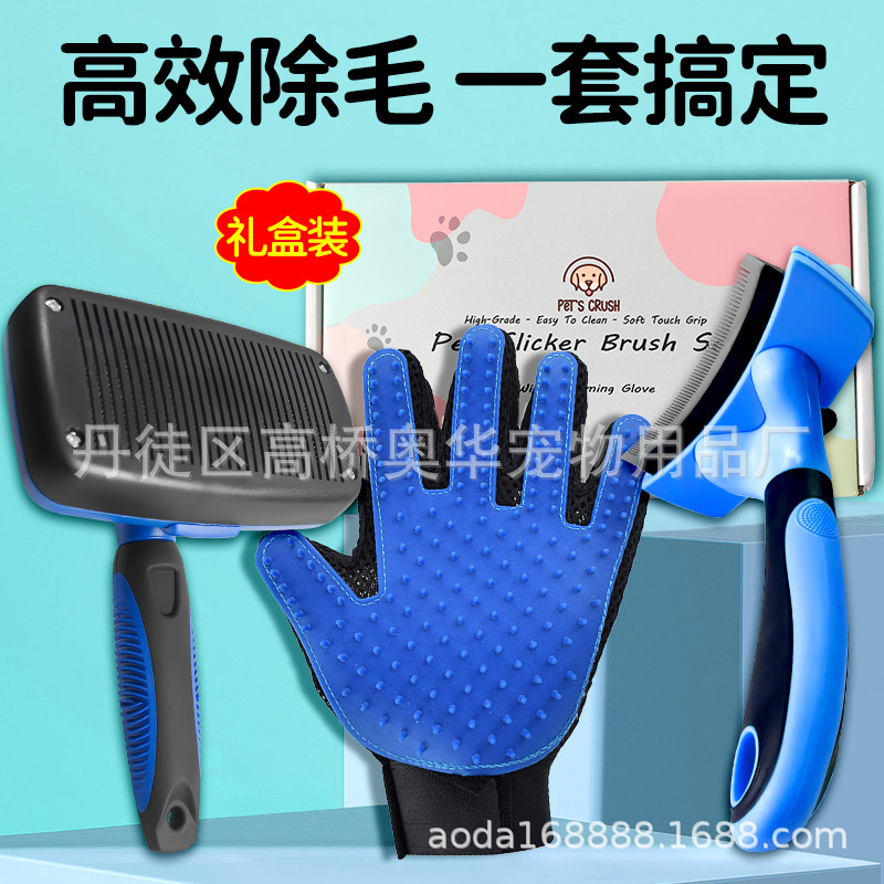 跨境新款宠物清洁套装狗狗一键褪毛自洁美容梳猫狗打薄梳撸毛手套