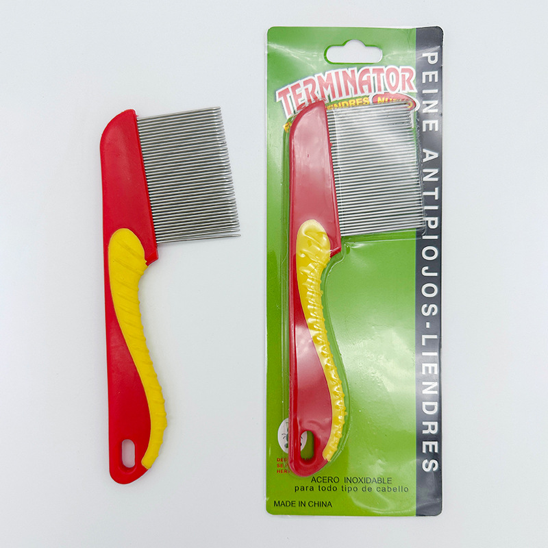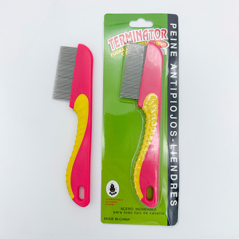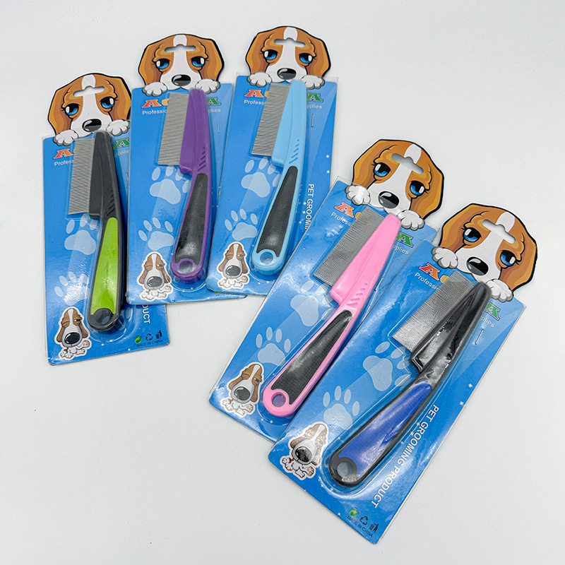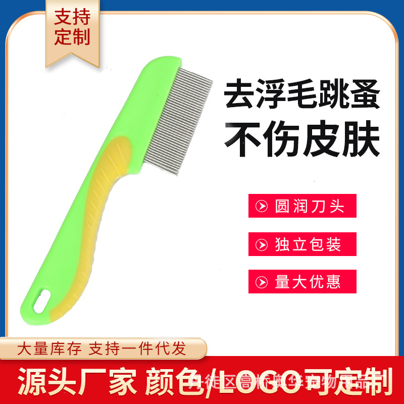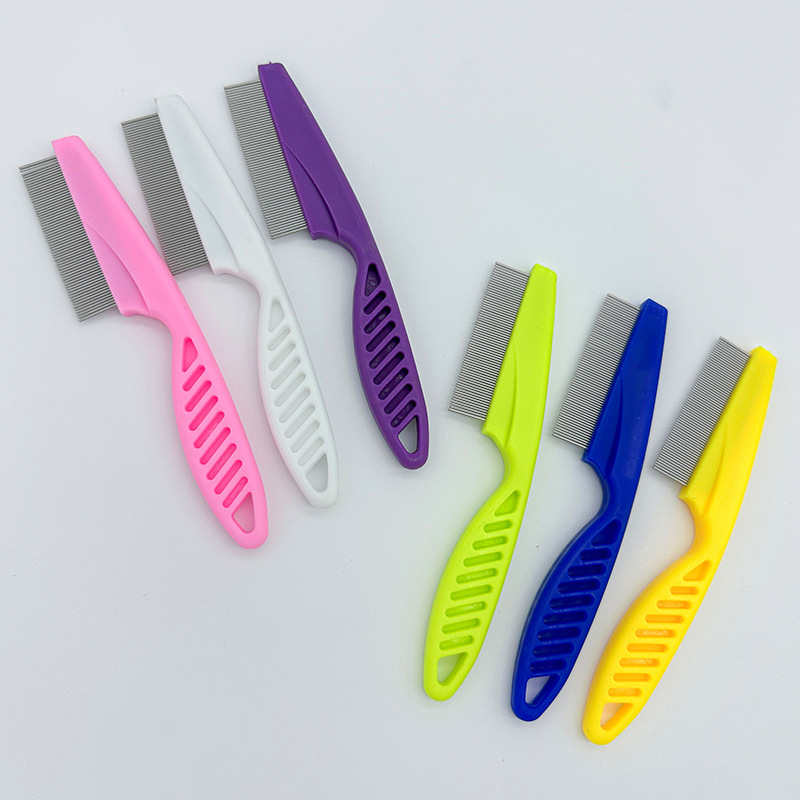 厂家批发宠物梳子塑柄除跳蚤梳不锈钢针猫狗除蚤虱子梳高效清洁