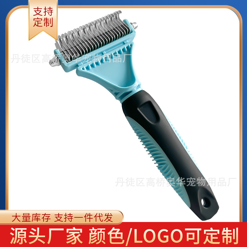 现货批发宠物猫咪狗狗不锈钢双面开结梳亚马逊跨境褪毛梳子脱毛刷