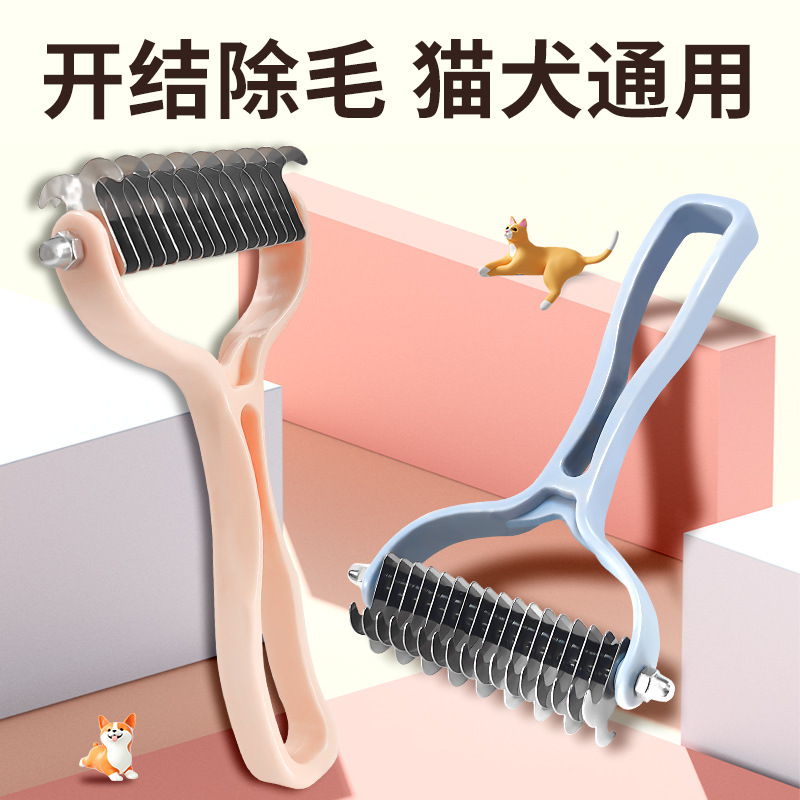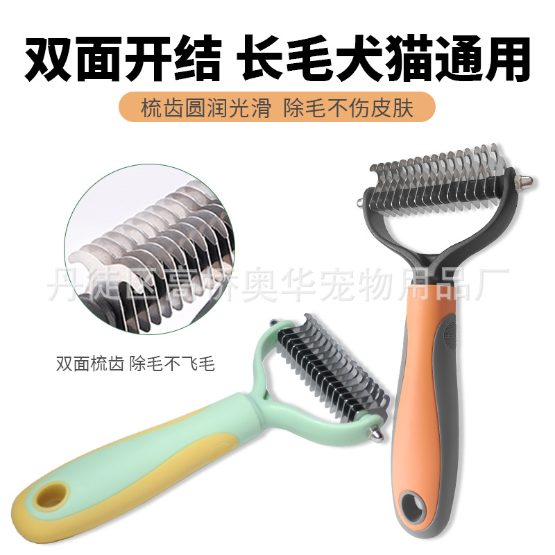 厂家直销宠物开结梳子长毛猫咪不锈钢双面打薄器狗去浮毛宠物用品