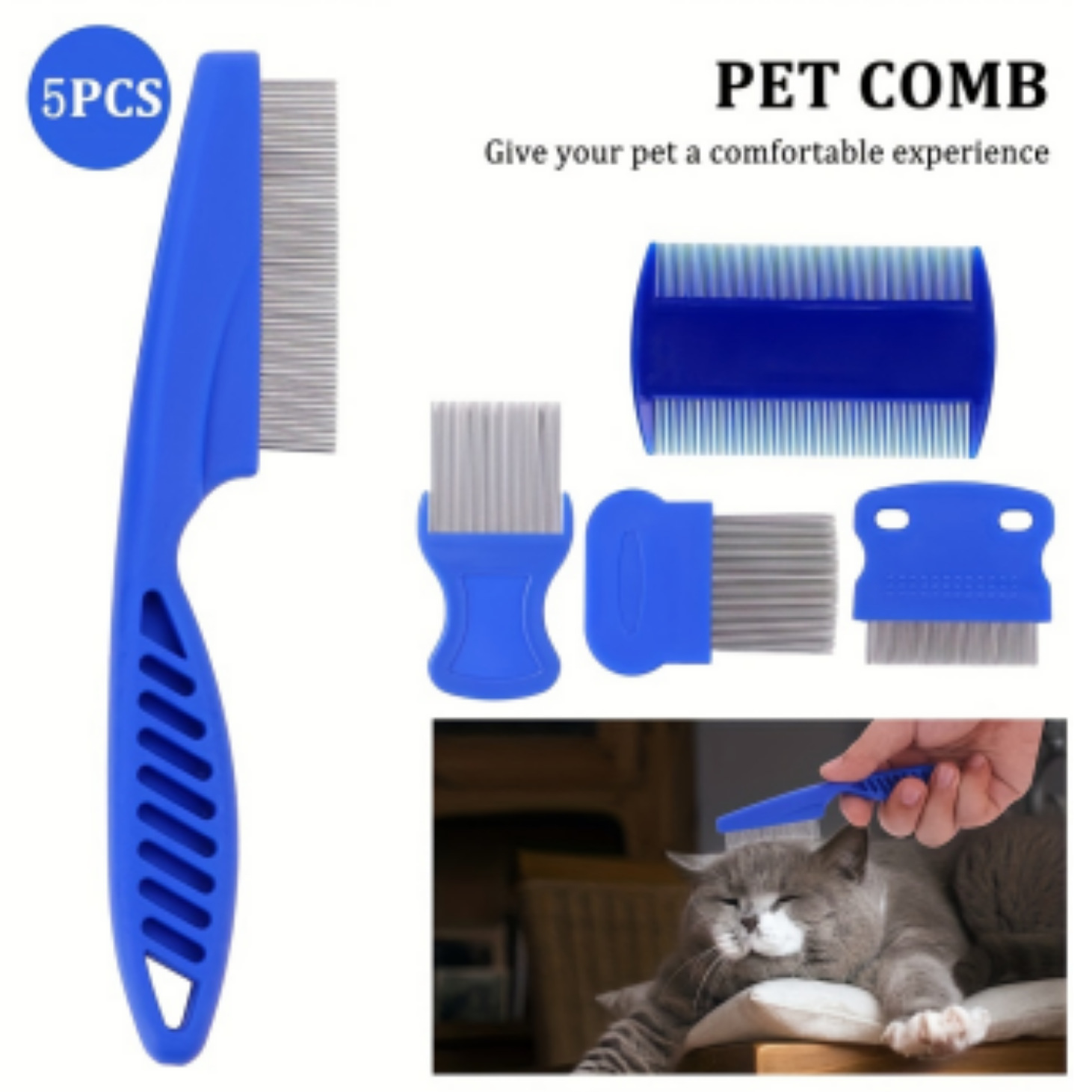 厂家直销跨境塑料貔子梳 密齿梳子宠物除蚤祛毛5件套美容清洁用品