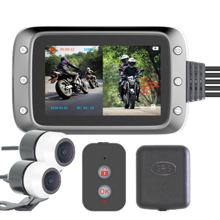 1080P双镜头广角140°摩托车行车记录仪机车GPS带线控记录器双摄