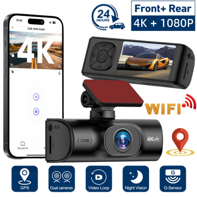 跨境行车记录仪4K高清双镜头红外夜视WiFi互联GPS车载摄像机