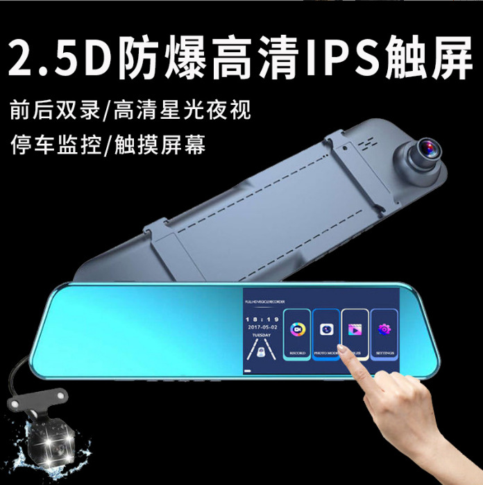 行车记录仪4.7寸触控按键后视镜高清夜视前后双录厂家车载