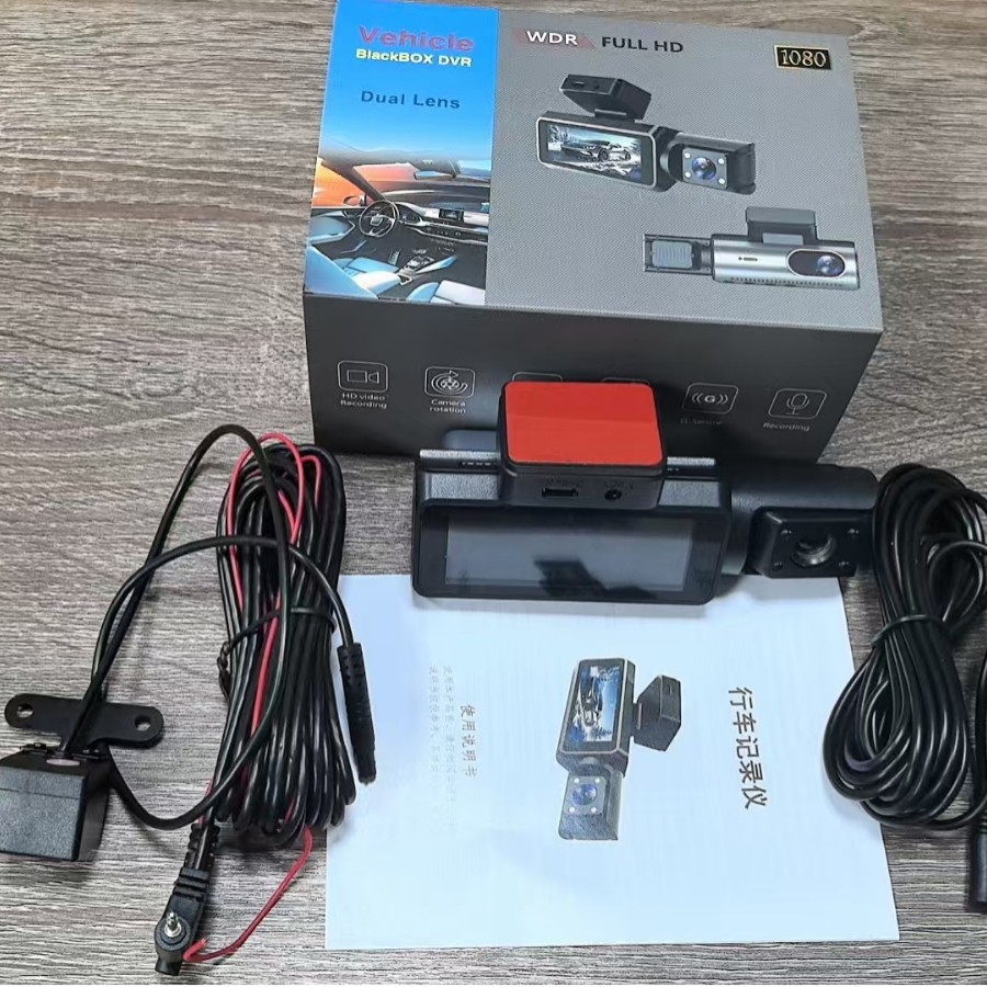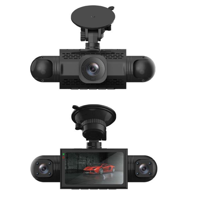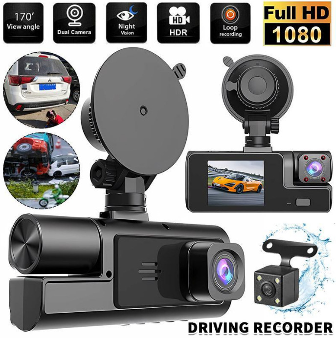 新款3镜头录像行车记录仪高清1080P车前车内车后同时录像多国语言
