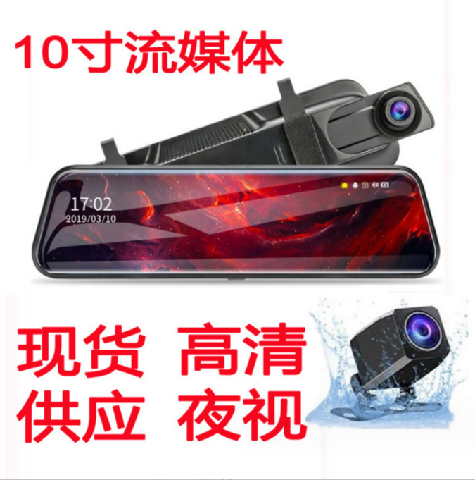 新款行车记录仪免安装10寸高清夜视流媒体后视镜前后双镜头跨境