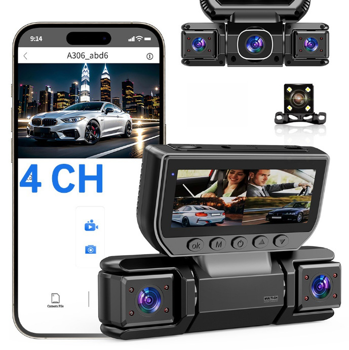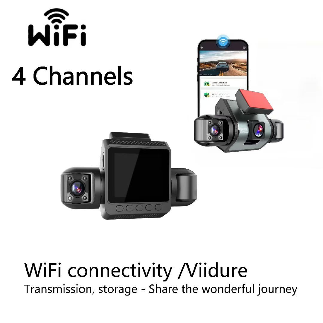 新款3寸四录高清行车记录仪红外夜视IPS高清屏WiFi手机互联多镜头