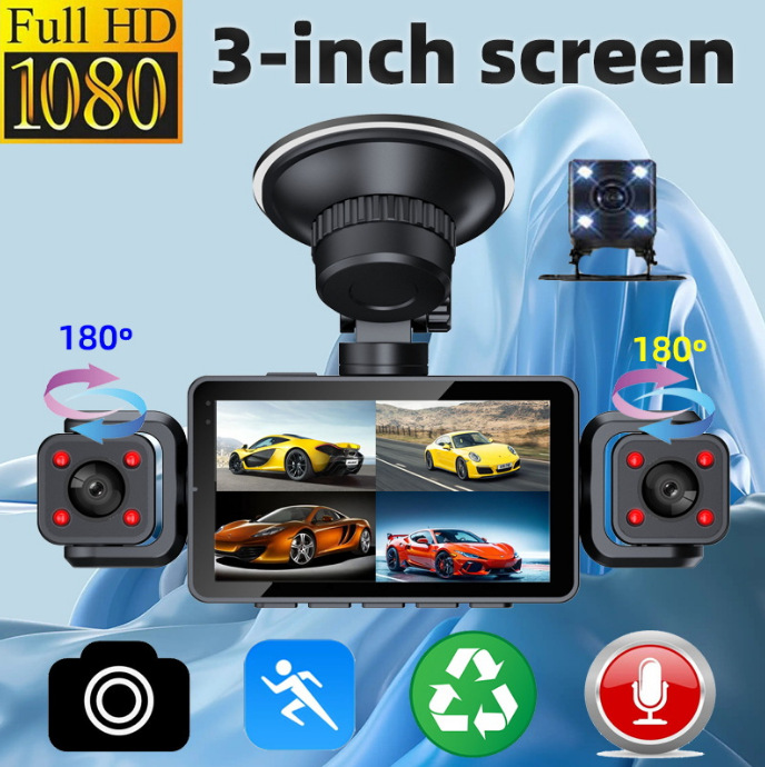 2寸屏360行车记录仪3路高清1080P三镜头停车监控带夜视车载DVR