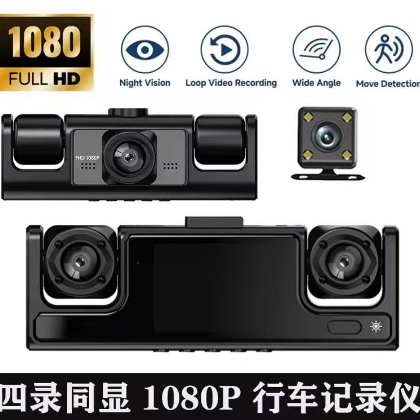 厂家直销新款高清夜视1080P行车记录仪四录同显带倒车影像车载DVR