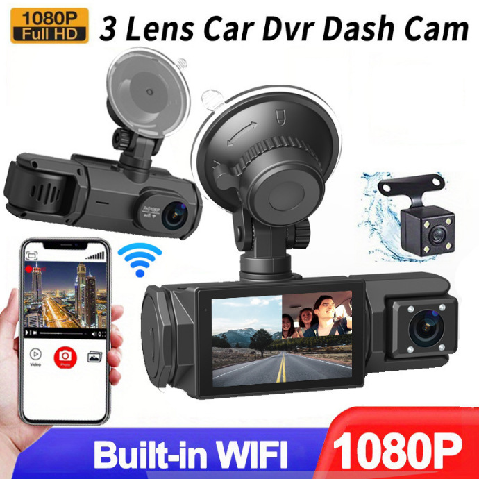3寸屏行车记录仪3路高清1080P带WIFI三镜头停车监控带夜视车载DVR