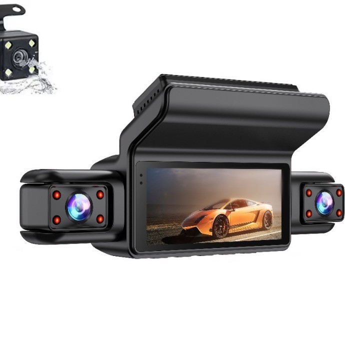三镜头行车记录仪 1080P 倒车影像车内夜视 三录行车记录器