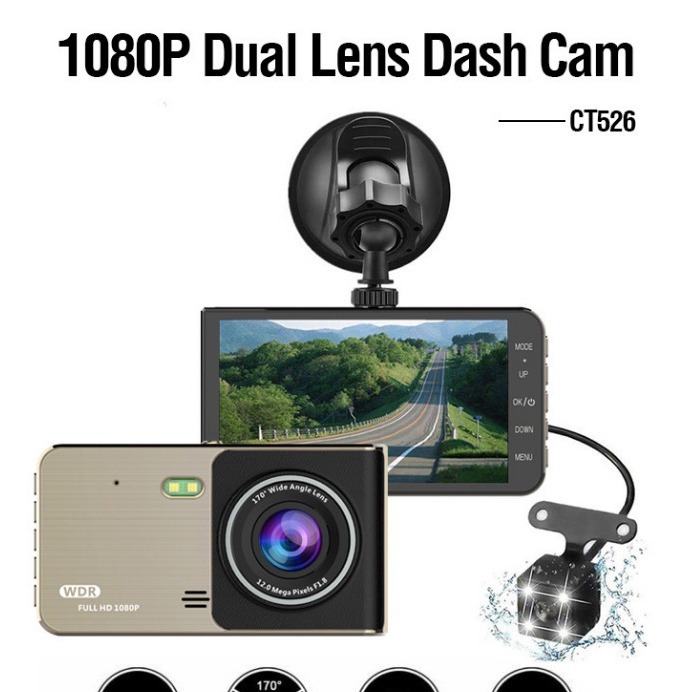 T526新款4.0英寸IPS锌合金行车记录仪高清1080P双镜头倒车car dvr