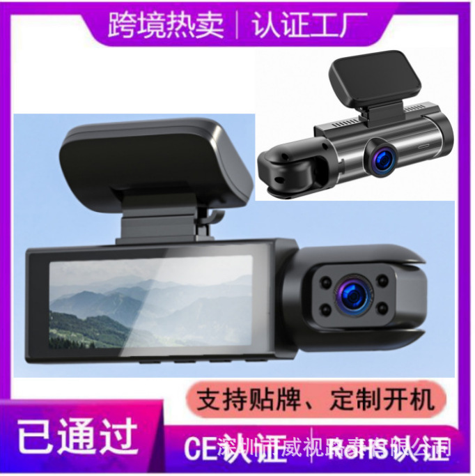 新款3寸跨境行车记录仪车内高清夜视高清360度3录三录私模