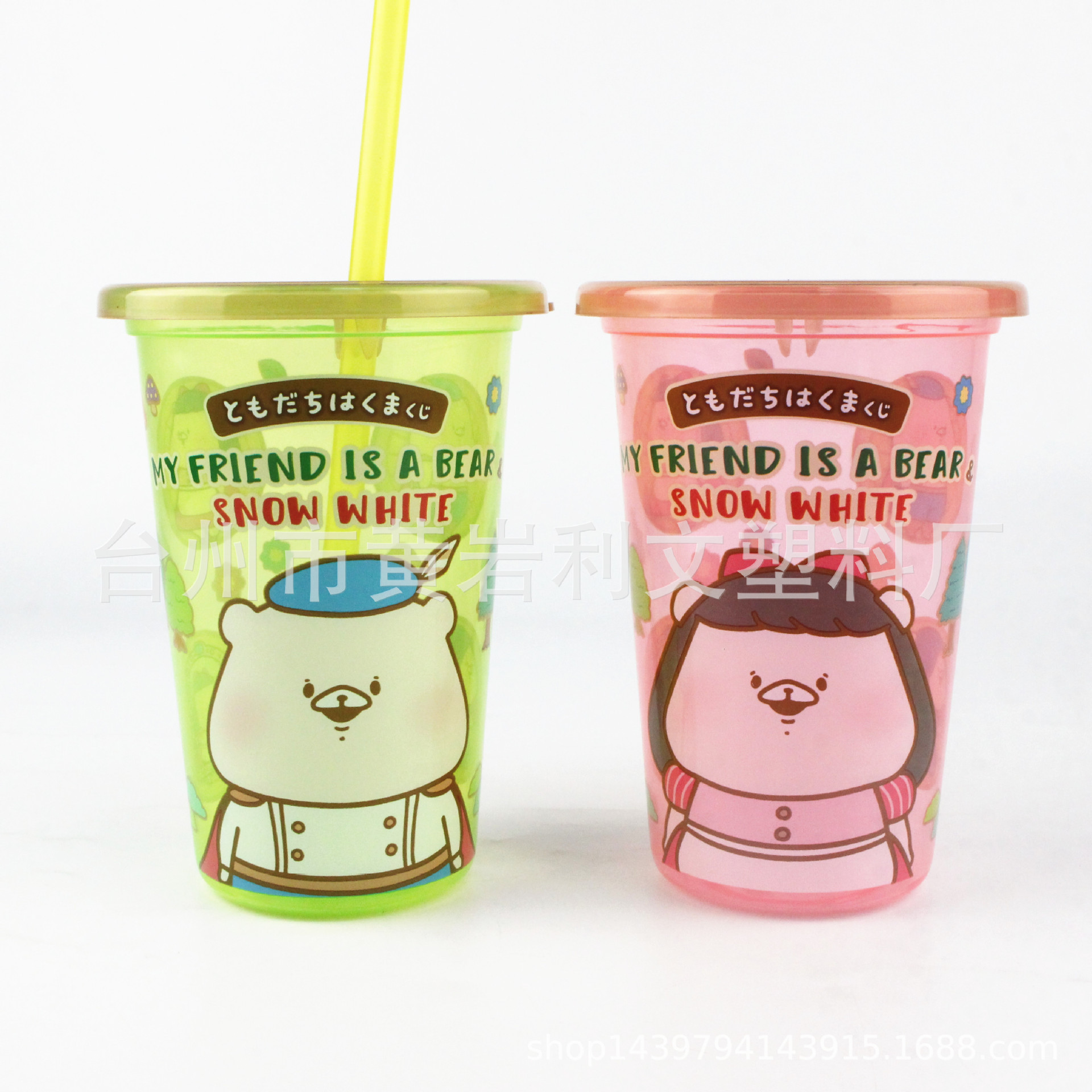 日本杯 pp270ML塑料吸管杯 含吸管儿童杯套装超市礼品杯满版印刷