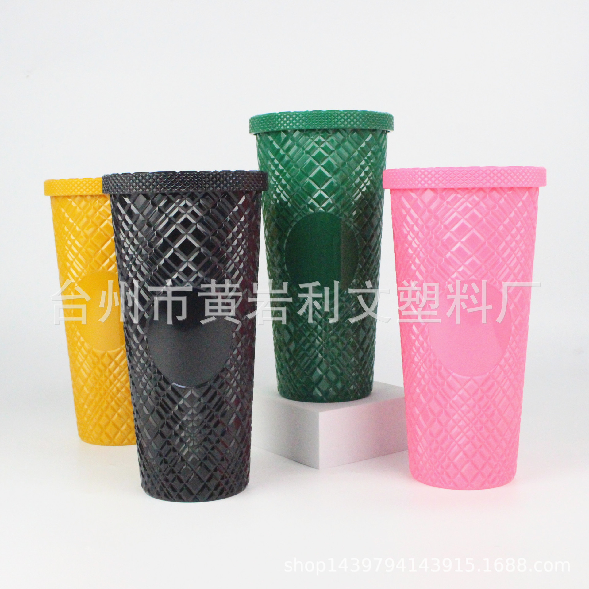 直供双层塑料吸管杯大容量创意620ml榴莲杯扎手杯便携 钻石杯
