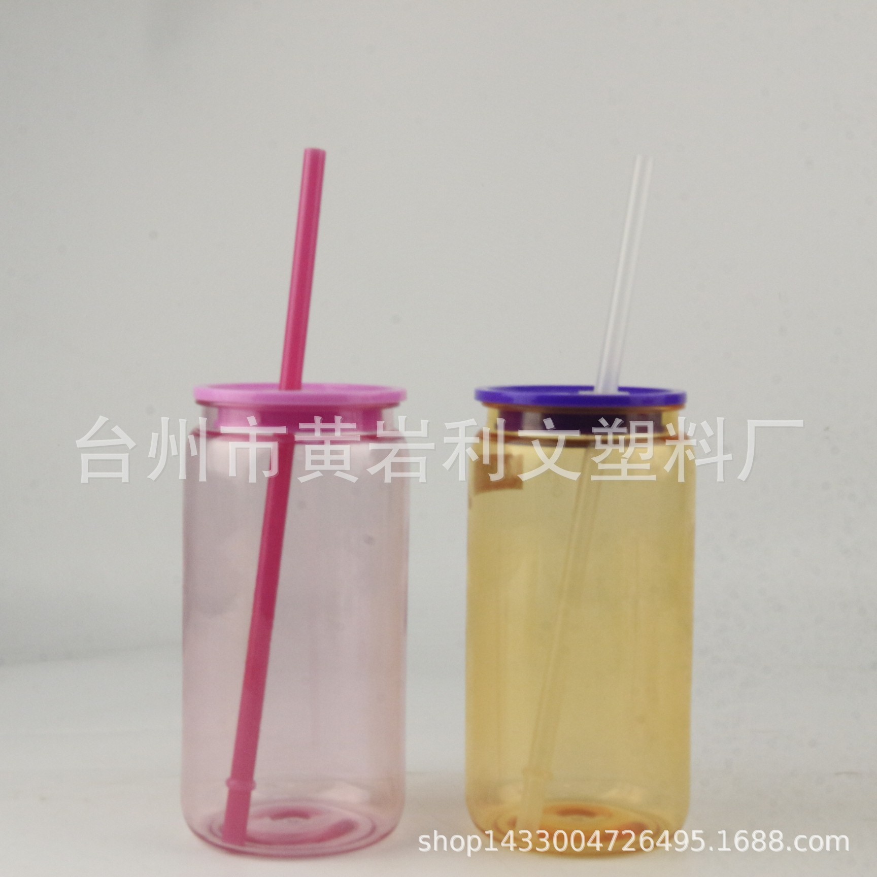 工厂直供彩色透明可乐罐带吸管 梅森瓶 塑料罐单层吸管杯