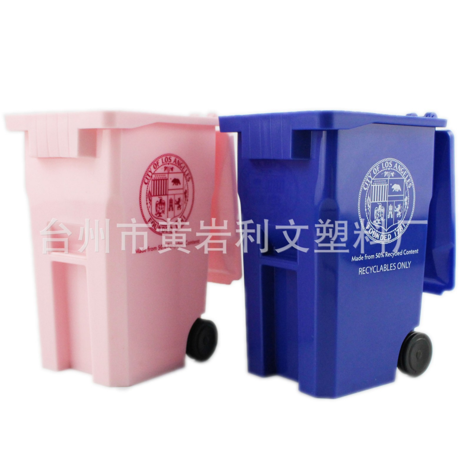 Mini笔筒 塑料垃圾桶式带轮子塑料笔筒 可定LOGO
