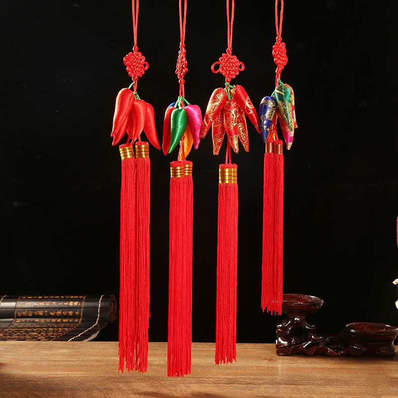 春节彩色烫金辣椒流苏挂件十字中国结喜庆饰品客厅车载装饰品现货