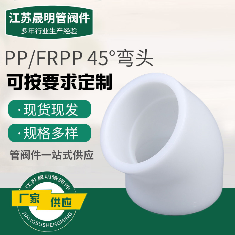 定制pp弯头聚丙烯热熔承插45度frpp弯管塑料水管接头工业管道配件