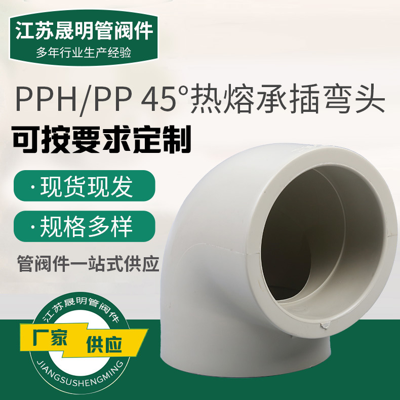 定制pph45°弯头热熔承插塑料弯管水管接头配件化工管道焊接管件