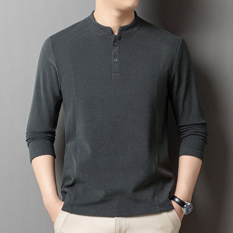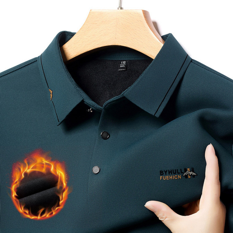 男士大码高档休闲商务长袖翻领T恤纯色打底衫加绒加厚冬季保暖