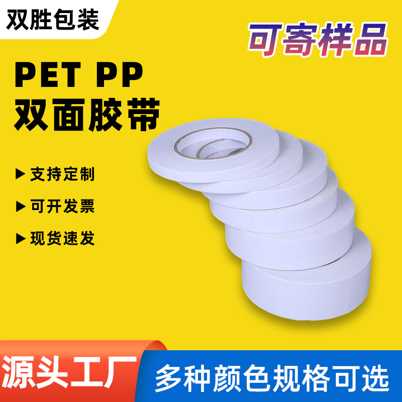 双面胶带PET PP白色抗拉强粘透明双面胶铭牌粘连电子面板背胶胶带