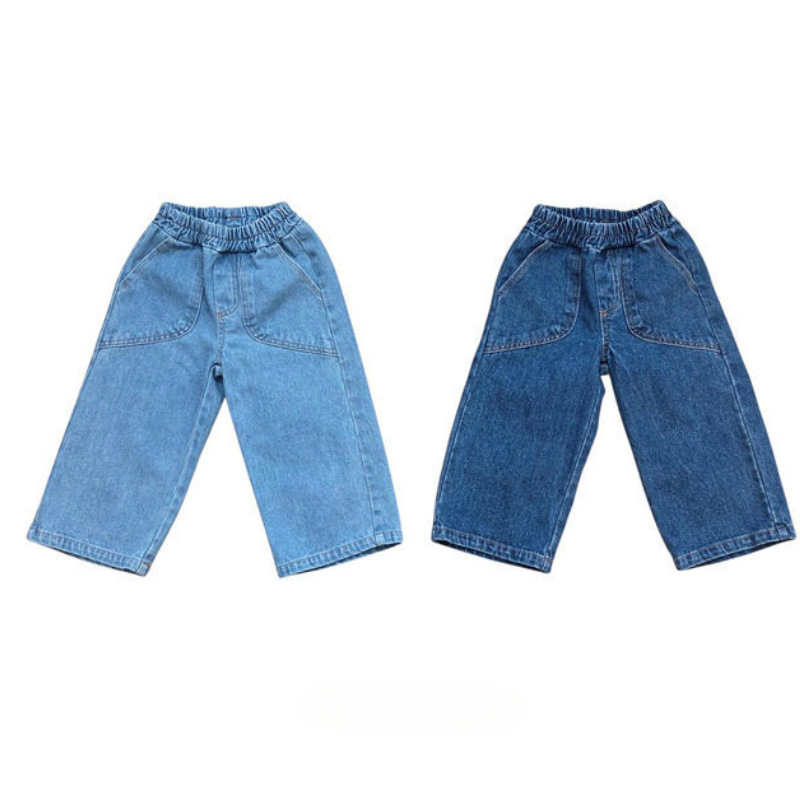 儿童纯色潮范牛仔直筒裤童装韩版2026春季新品保暖百搭时尚长裤